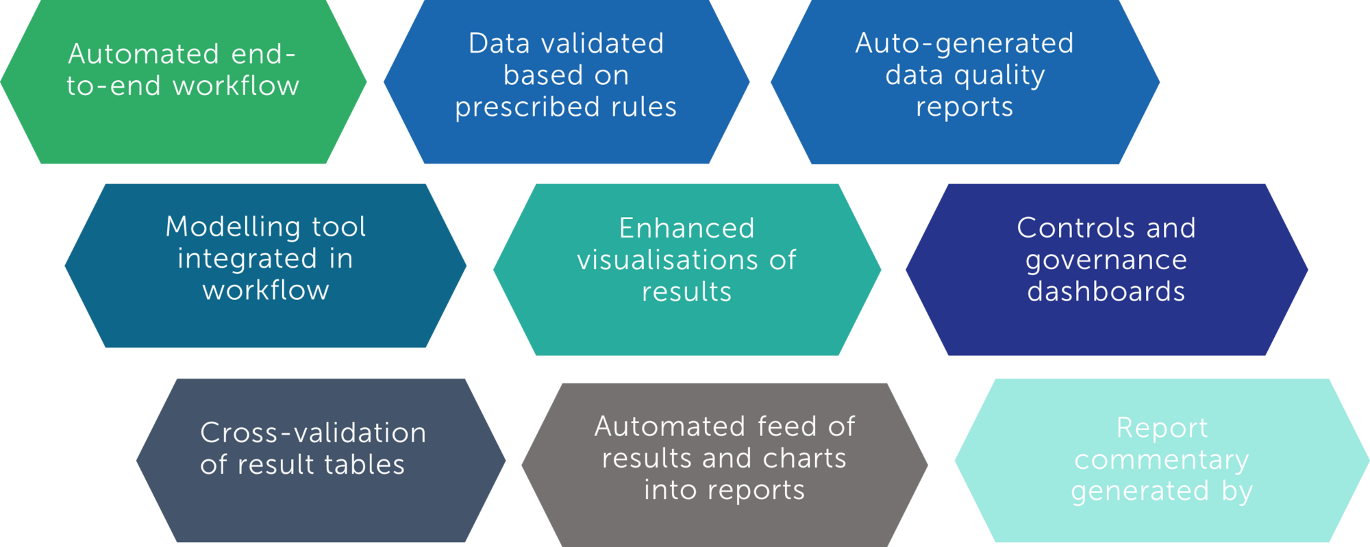 We automate your end-to-end workflows from raw data to final reports. We ensure that the new workflow is transparent and has proper controls, governance, and documentation.